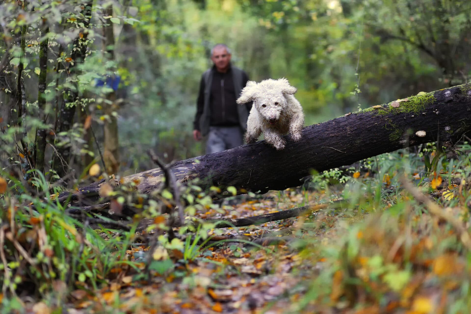 In the woods outside town, truffle hunting is disciplined, technical work. A trained dog, often a cross between hunting breeds selected for scent acuity and temperament, works slowly across sandy ground, weaving between oak and poplar. When it detects the scent, it pauses and scrapes lightly. Cucchiara steps in with a narrow spade, removing soil carefully to protect the surrounding roots. Italian regulations govern harvesting seasons and methods to preserve future yields. Pigs, once used because of their acute sense of smell, were banned in the 1970s due to the damage they caused and the difficulty of controlling them once they located a truffle.