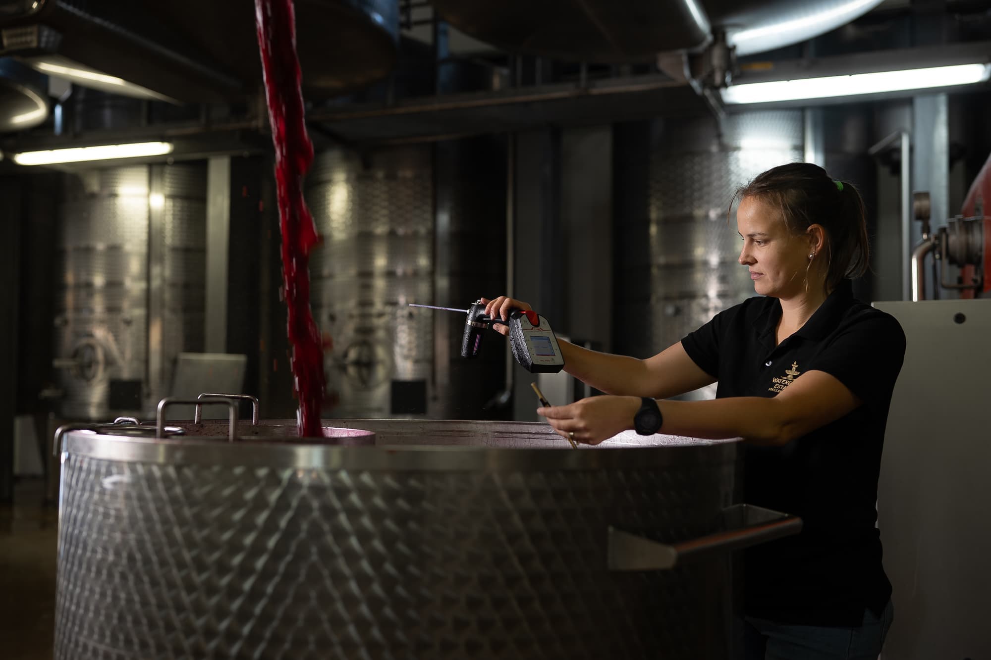 The winery remains very much a working environment, with vineyards climbing the surrounding slopes and production facilities integrated into the estate rather than concealed. Guests gather in the central courtyard, seated casually with a glass in hand, the sound of water moving softly at its centre.