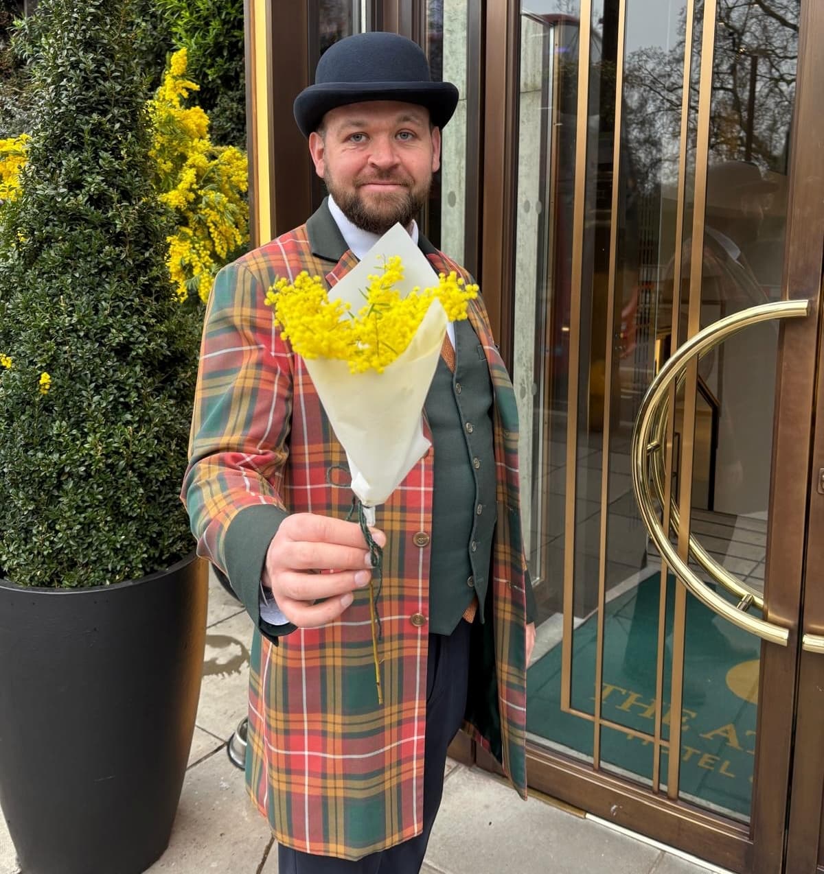 The entrance below operates with the warm formality that good hotels do well. A doorman in a top hat, green waistcoat, and a distinctive red tartan livery greets arriving guests with an unhurried charm and capable hands. The pavement outside at the Piccadilly facing terrace, where you'll see the bistro-like restaurant with couples dining alfresco while the city moves past them and business lunches conducted over good wine.