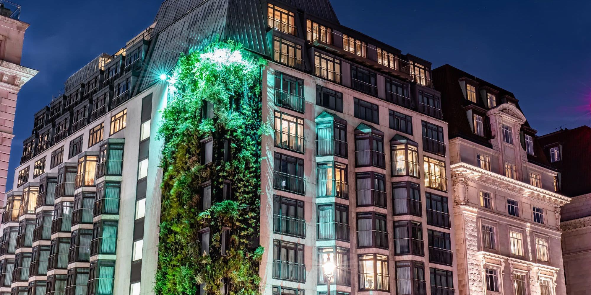 Before you step inside, the building itself earns your attention. The Athenaeum is home to one of London's most remarkable vertical gardens, a ten-storey living wall created by the renowned French botanist Patrick Blanc, whose work in this form has changed the way cities think about their own surfaces. What might otherwise have been another forgettable urban exterior becomes something genuinely extraordinary: an oxygen-generating, constantly changing canvas that turns with the seasons, softening the stone and glass with colour and texture. It buffers the noise of Piccadilly, it changes colour through the seasons, and it frames the hotel in a way that feels both completely unexpected and entirely right for a property carrying this particular name.