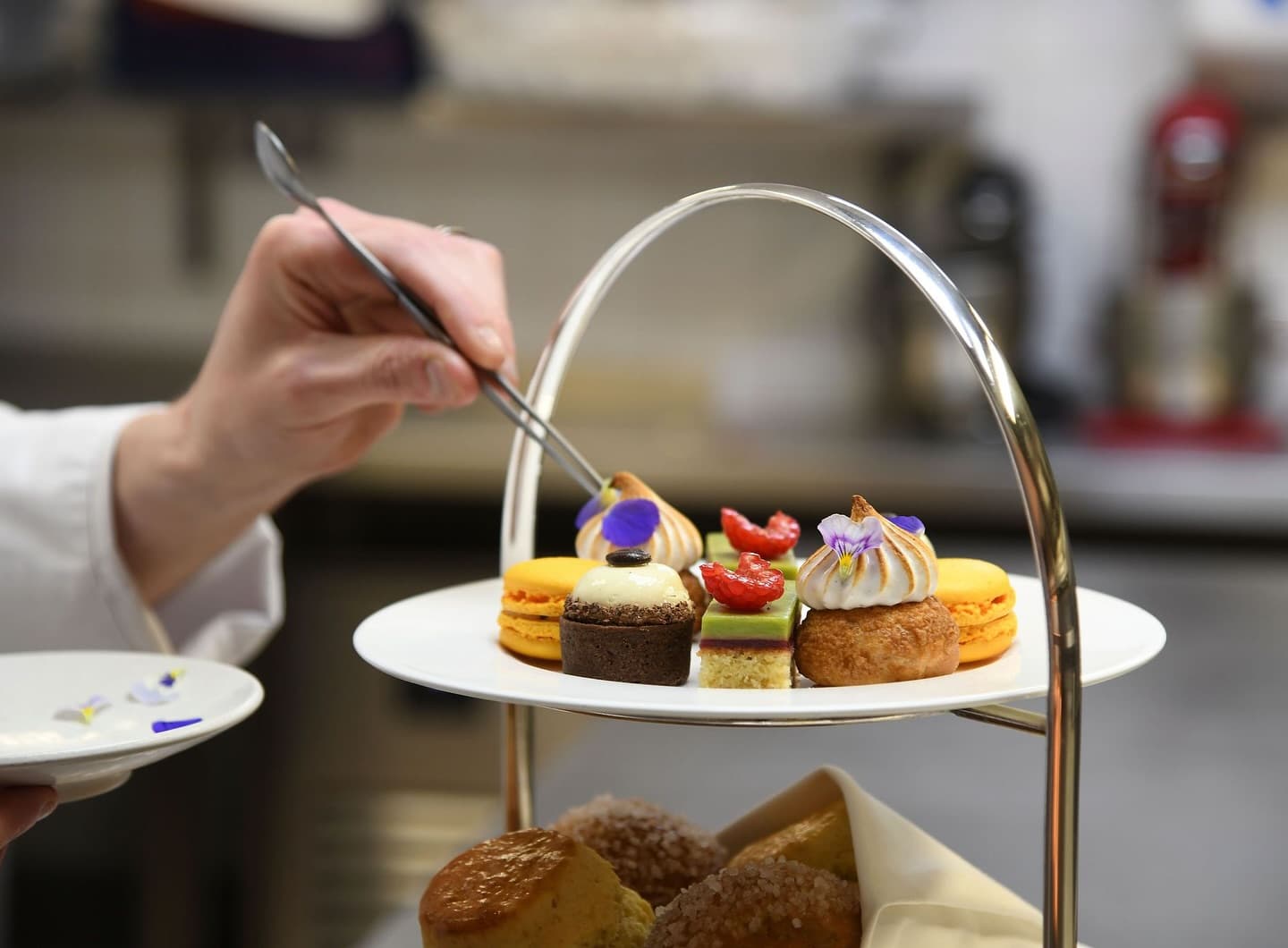 Apricot Blossom white tea combines the delicate character of Chinese Pai Mu Dan with subtle stone fruit notes that work beautifully alongside the pastries. A blossoming green tea slowly unfurls inside the pot to reveal a chrysanthemum flower scented with jasmine and lavender, echoing the gardens outside. Other blends incorporate ingredients such as rhubarb and vanilla, creating flavours that pair naturally with the desserts. The variety encourages guests to experiment with more than one pot during the course of the afternoon.